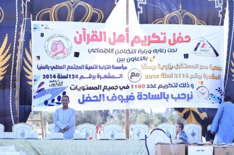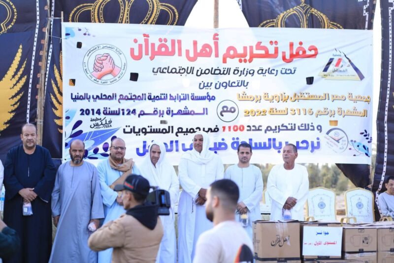 هناك، تجلت ثمرة الجهد والإخلاص في حفلٍ بهيج أقامته ” جمعية مصر المستقبل” بزاوية برمشا – المشهرة برقم 3116 لسنة 2022 ، لتكريم 1076 متسابقًا حصلوا على أكثر من 90 ٪ في مسابقة مؤسسة ترابط بالمنيا، من أصل 1260 متقدمًا للاختبارات، حملوا لواء التميز، وكانوا وسام الفخر لأهلها، ورفعوا راية القرآن خفّاقةً في سماء المحافظة.